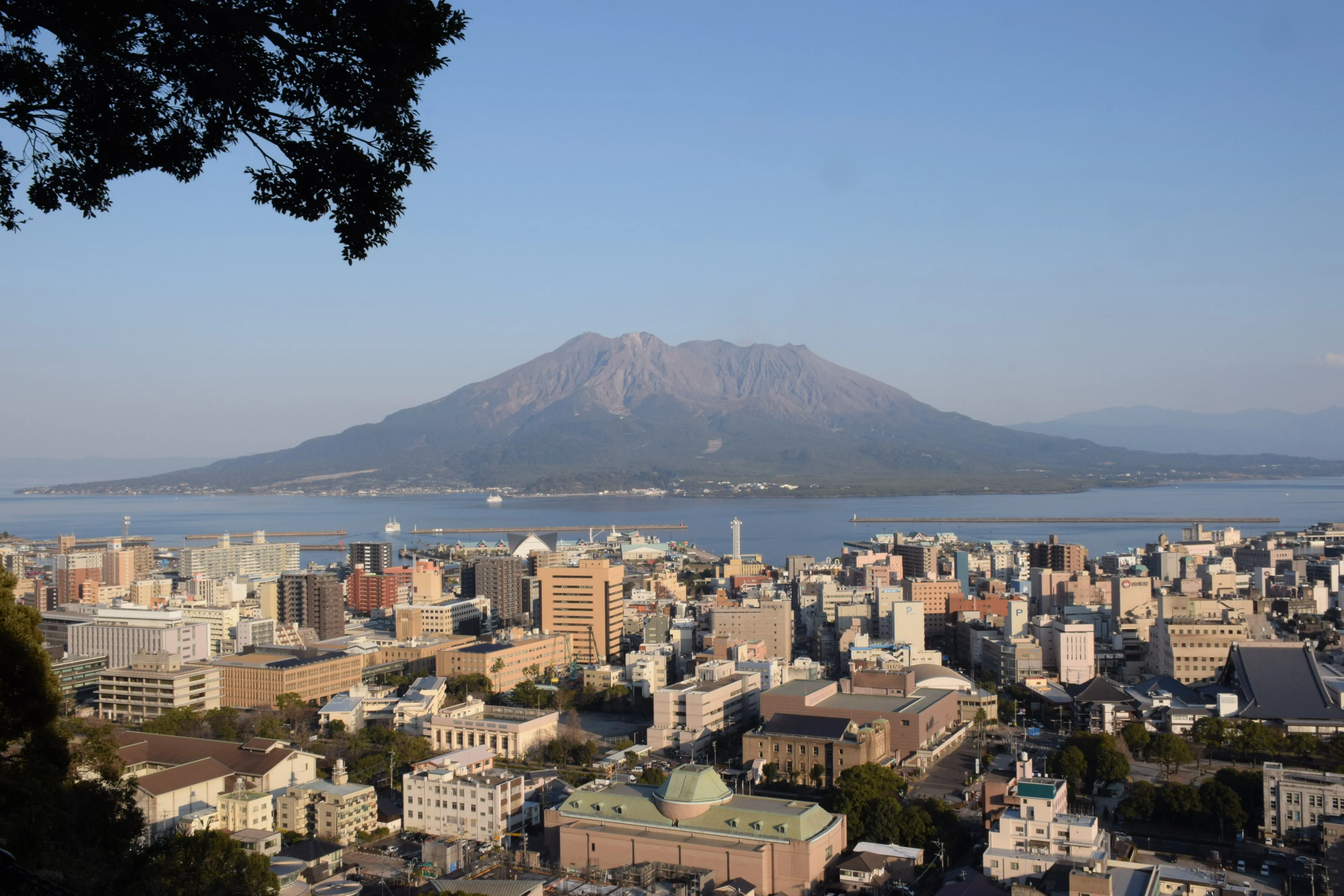指宿駅から鹿児島中央駅へ移動し、そこからバスで城山へ。鹿児島の街を一望できるスポットです。桜島を眺めると、自分が今九州にいることを改めて実感します。