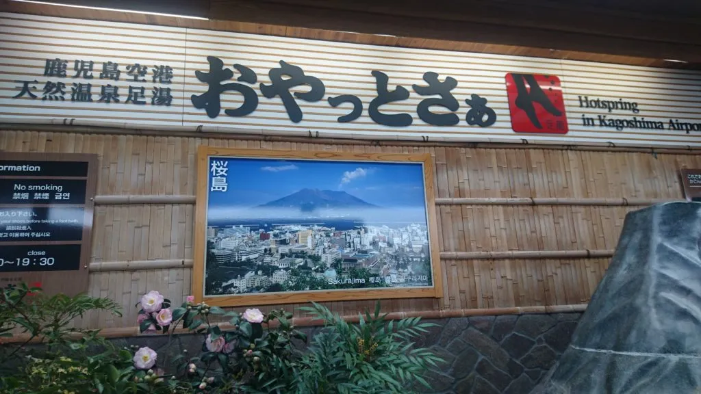 空港を出て、バス乗り場へ行くと指宿行きの文字があります。せっかくなので温泉で有名な指宿へ行ってみようと思い立ち、発車までの少しの間、空港にある足湯を楽しみ、指宿行きのバスに乗り込みました。
