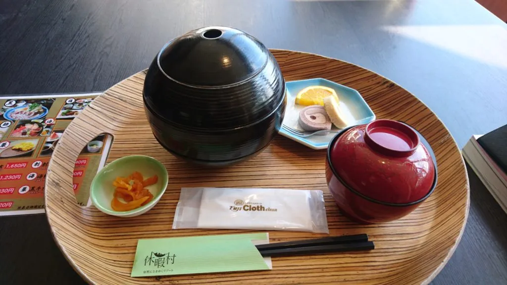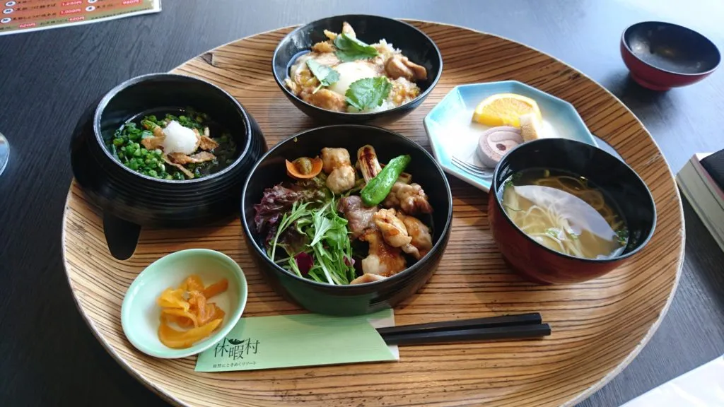 昼食は休暇村でとりたま丼というのを食べました。球体の面白い形の器です。