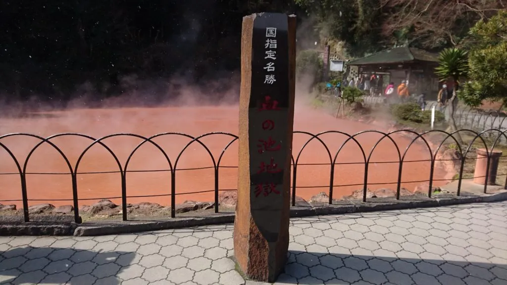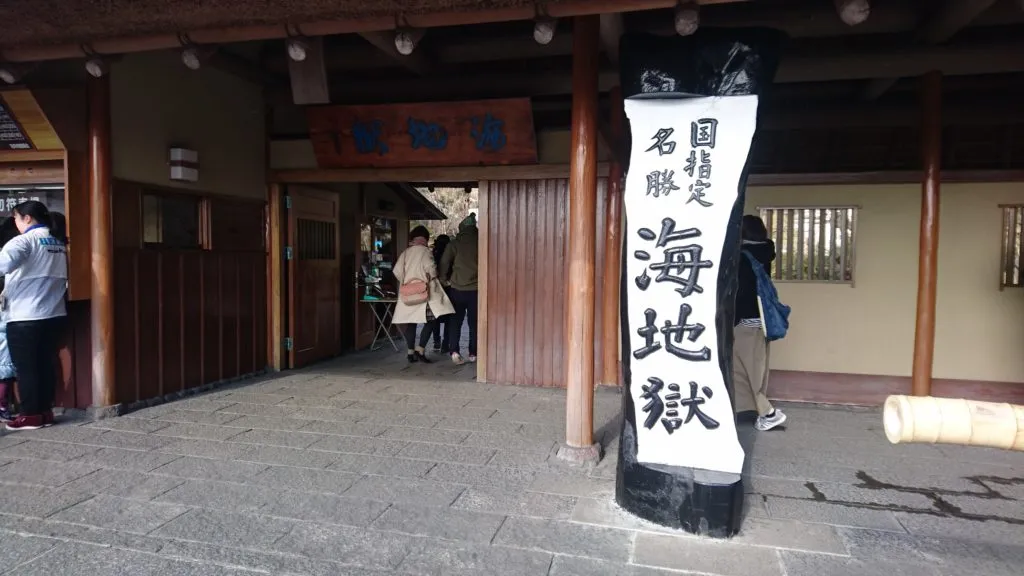 別府駅からバスで海地獄へ向かいます。海地獄で地獄めぐりの共通観覧券を買って、地獄めぐりが始まります。