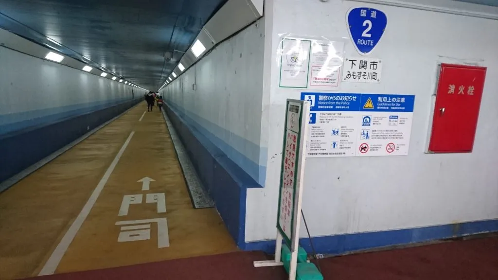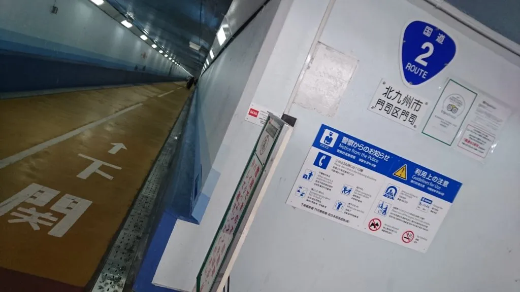 門司側には意外とすぐに行けました。すぐに九州と本州を往復することのできる関門トンネル人道はお勧めスポットです。県境で写真を撮ってる人も何人かいました。