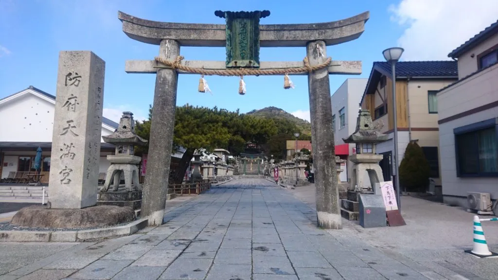 防府駅から防府天満宮までは歩いていきました。30分ほど人通りの少ない道を歩くと防府天満宮にたどり着きます。とても大きいです。さすが日本三大天神の一つです。他の二つの北野天満宮と太宰府天満宮は行ったことがあったので、これで3つ制覇したことになりました。